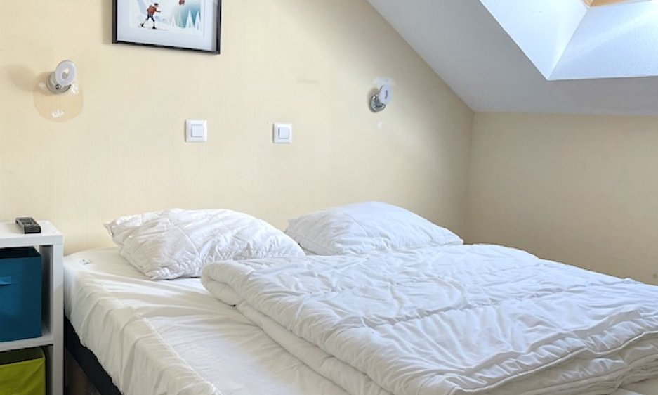 Chambre 2 : lit double 160 cm (séparable en 2 lits simples) + TV et rangements