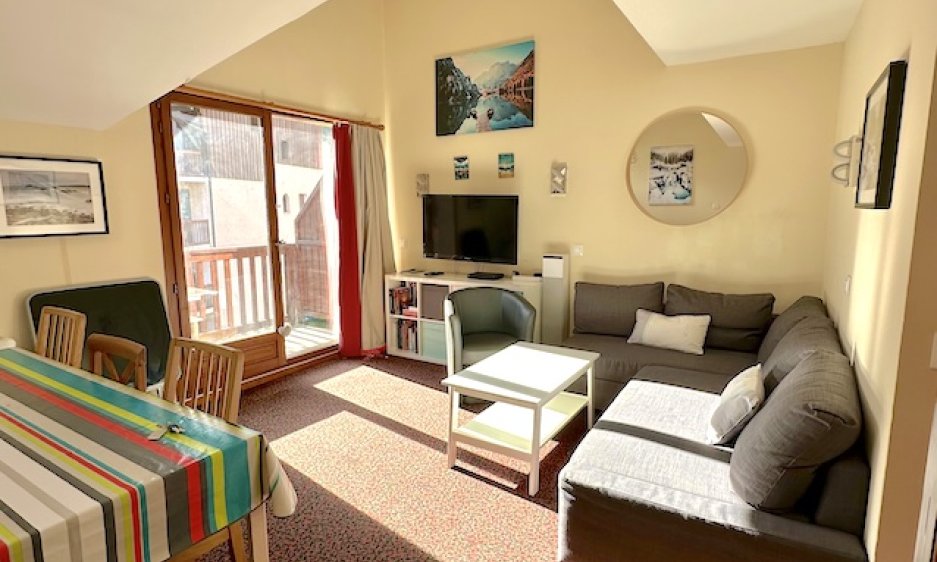 Séjour orienté plein sud avec canapé-lit, balcon et belle luminosité