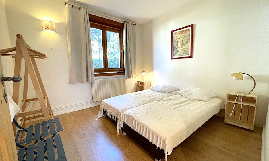 • 1 chambre avec deux lits simples (2x80 cm) pouvant être réunis en lit double (160 cm)