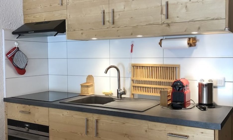 Très belle cuisine équipée de lave vaisselle, réfrigérateur, four traditionnel, four micro onde, plaques induction, cafetière NESPRESSO